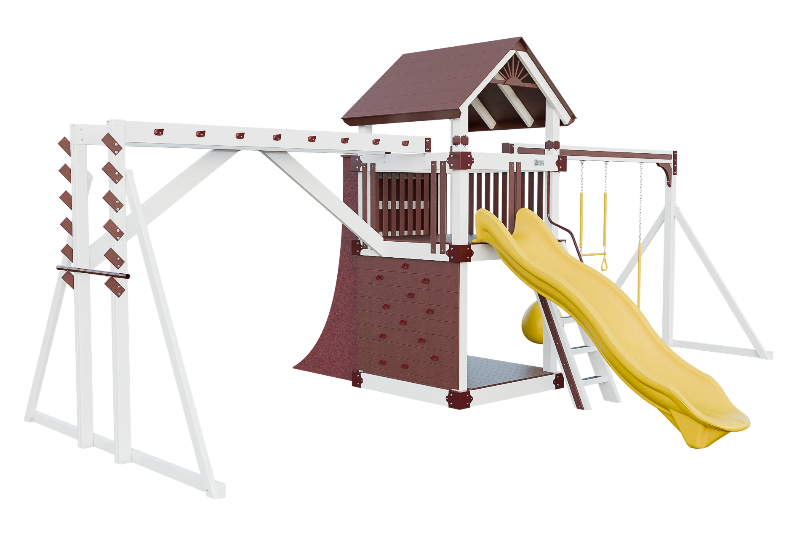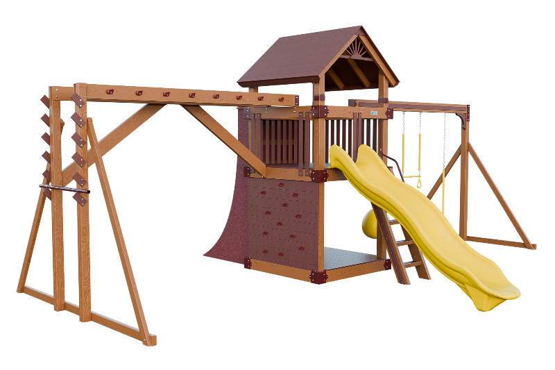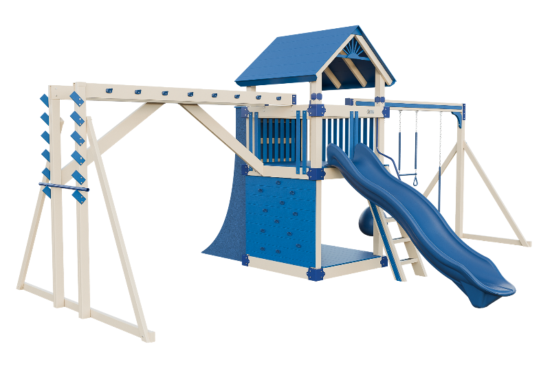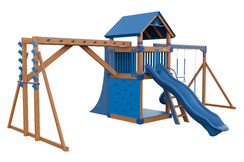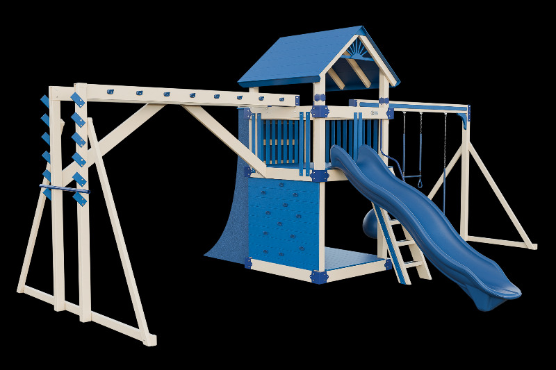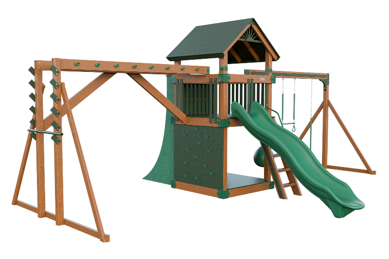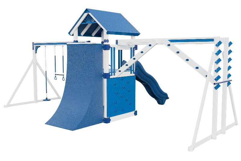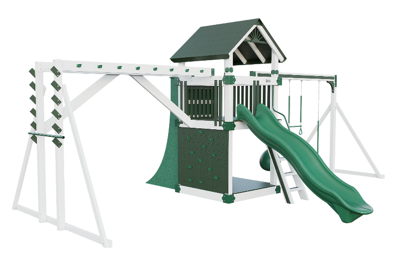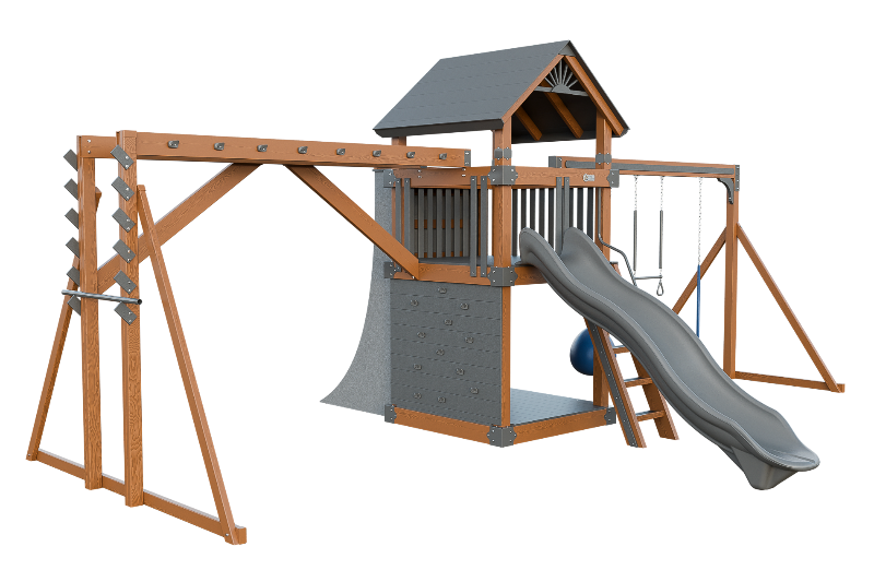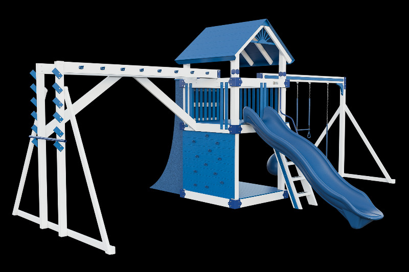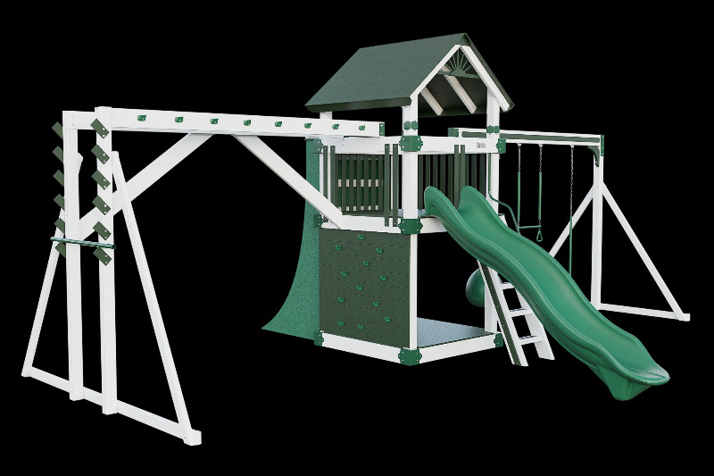 This combo playset is designed to provide your little ninja with hours of fun and adventure. It features a variety of climbing challenges, such as the Salmon Ladder, the V-climber, monkey bars, and even a warp wall to test your skills! The vertical rock wall will test their strength and agility, while the easy access ladder will allow them to reach the top of the playset. The 10ft Avalanche slide will offer them a thrilling ride down. This playset is ideal for developing motor skills and encouraging physical activity.
