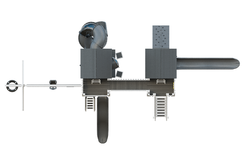 Access: Staircase, 6' 6" x 21" Bridge, 5' Access Ladder w/ Railing, 3' x 7' Rock Wall w/ Rope