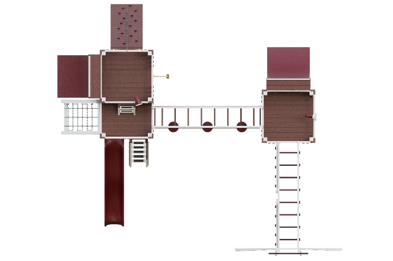 Access: 5' Access Ladder w/ Railings, (2) Tower Mounting Ladders, 5' x 5' Vertical Cargo Net, 3' x 7' Rock Wall w/ Rope, 4' x 5' Cargo Net