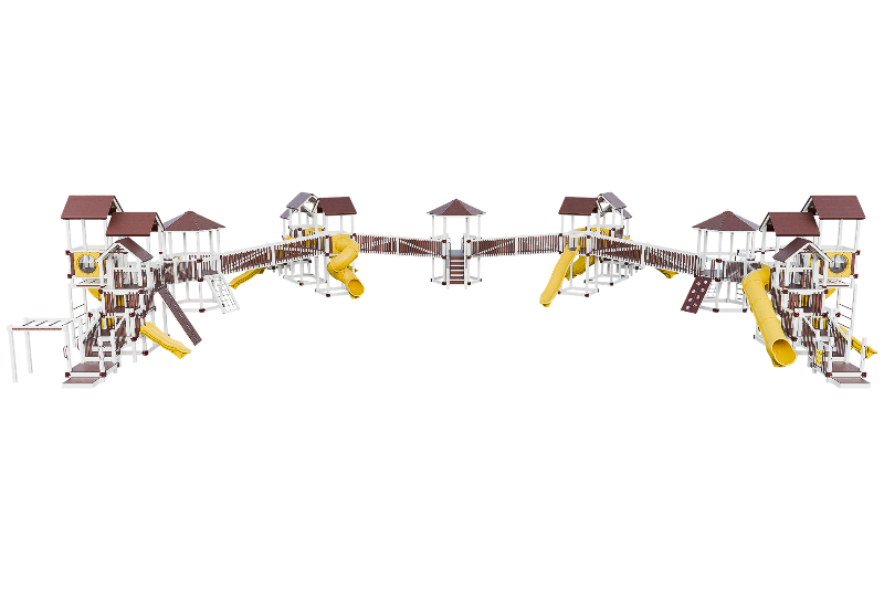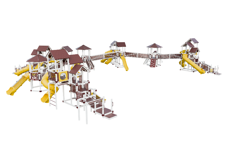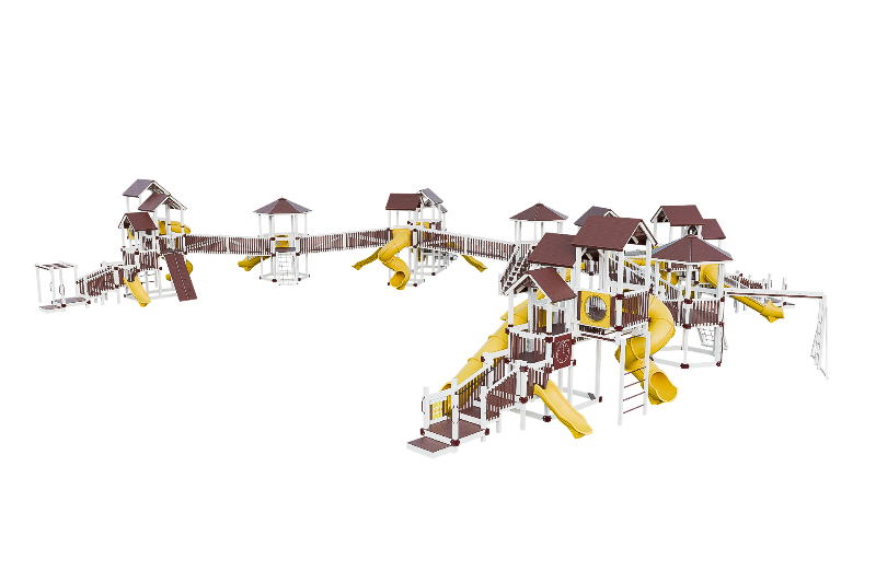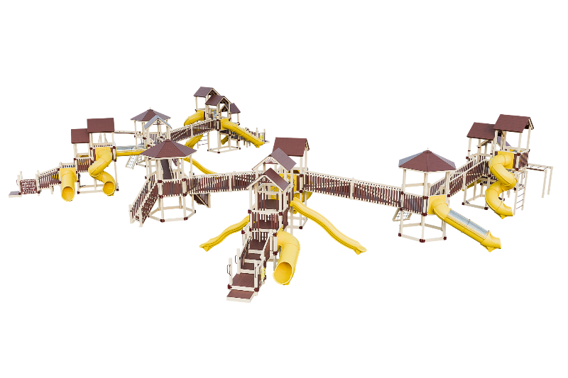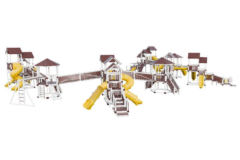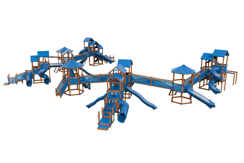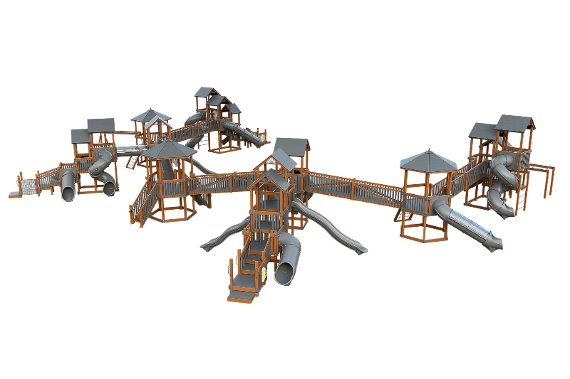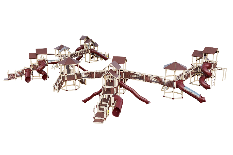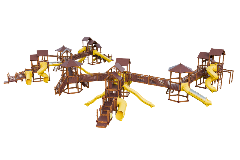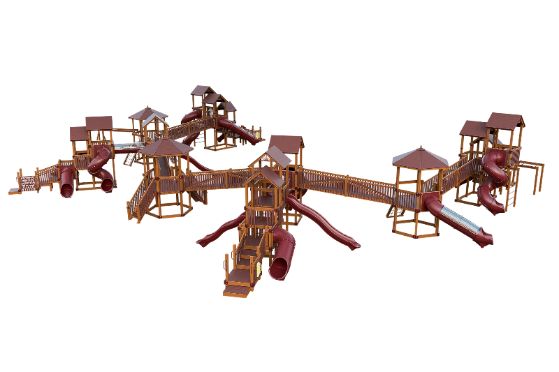 The Mighty Adventure is an absolute colossal playset is the largest commercial set we offer that invites children to embark on an extraordinary journey. Its towering structures offer multiple points of entry, including four ADA-compliant transfer stations. A labyrinth of interconnected towers beckons with a myriad of activities, providing a vast and stimulating playground for imaginative minds. Thirteen exhilarating slides beckon children to soar through the air, while the sixteen-foot bridges that seamlessly connect each tower allow for effortless exploration. This colossal playset offers ample space for children to roam and socialize, fostering the development of their physical, cognitive, and social skills.